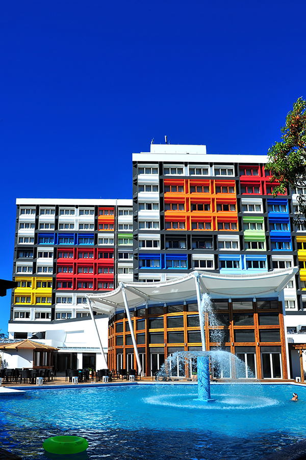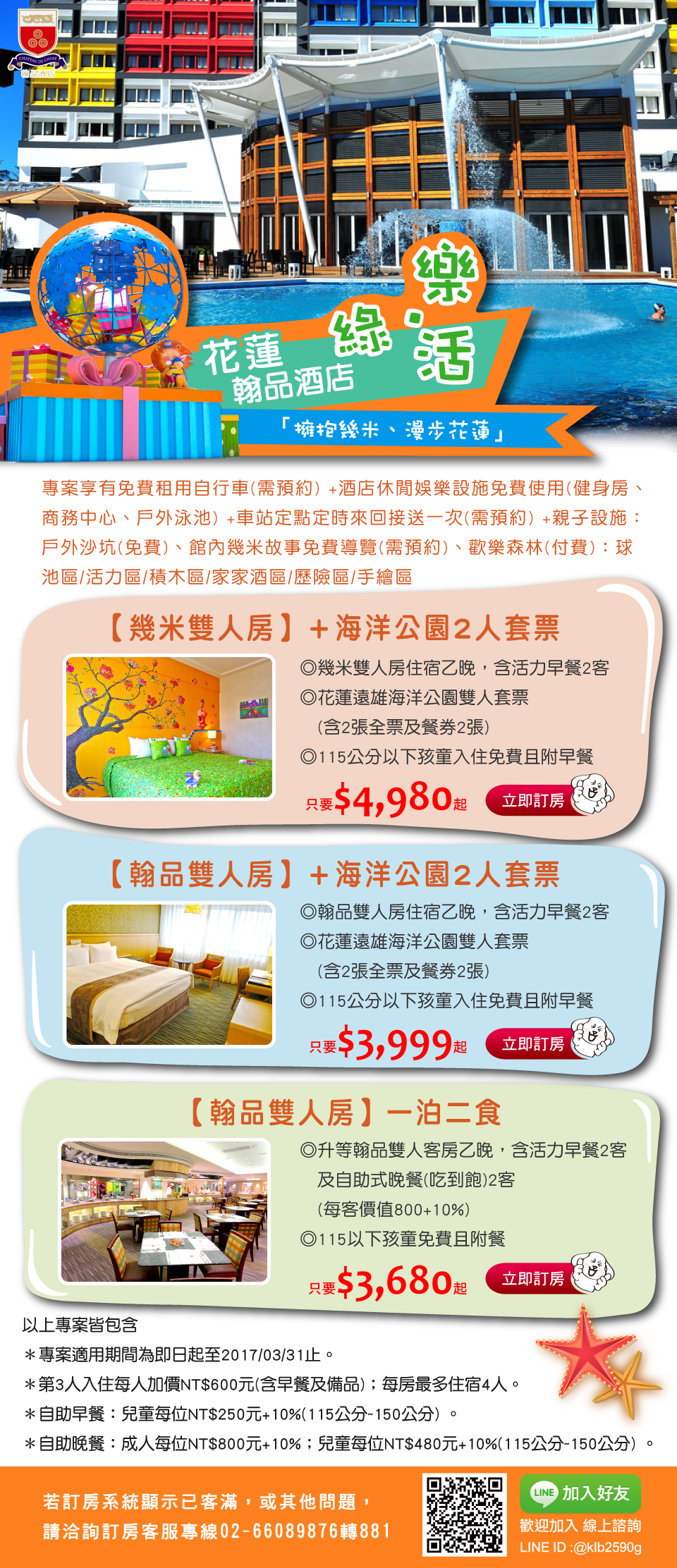 「擁抱幾米、漫步花蓮」「翰品酒店花蓮」為五星級酒店,包裹著蒙德里安躍動的幾何方塊,用創新精神在花蓮市區綻放著繽紛的身影。